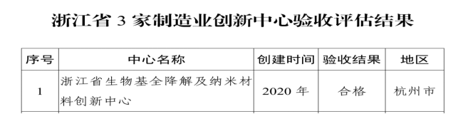 近日,浙江省經信廳發(fā)文公布制造業(yè)創(chuàng)新中心驗收評估結果,經形式審查、專家初步評議、現場考察和公示等程序,浙江省生物基全降解及納米材料創(chuàng)新中心順利通過驗收評估。